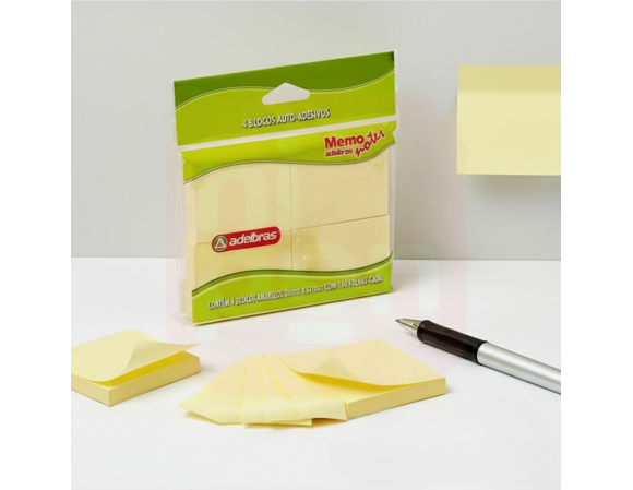 2. Post It 38x51 Amarelo 100 folhas 4 Blocos - Adelbras